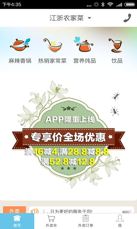 江浙农家菜app是一款线上订餐平台,用户在家就能随时随地订餐,轻松品尝浙江味道,全面掌握最新优惠活动,让用餐更省钱。