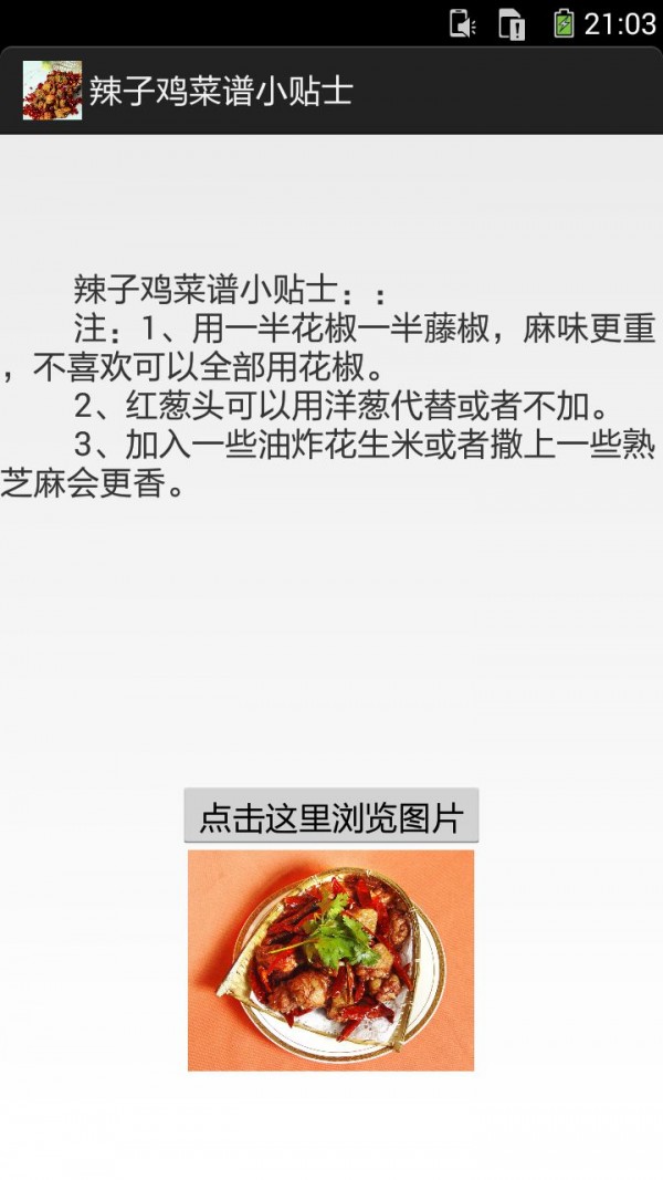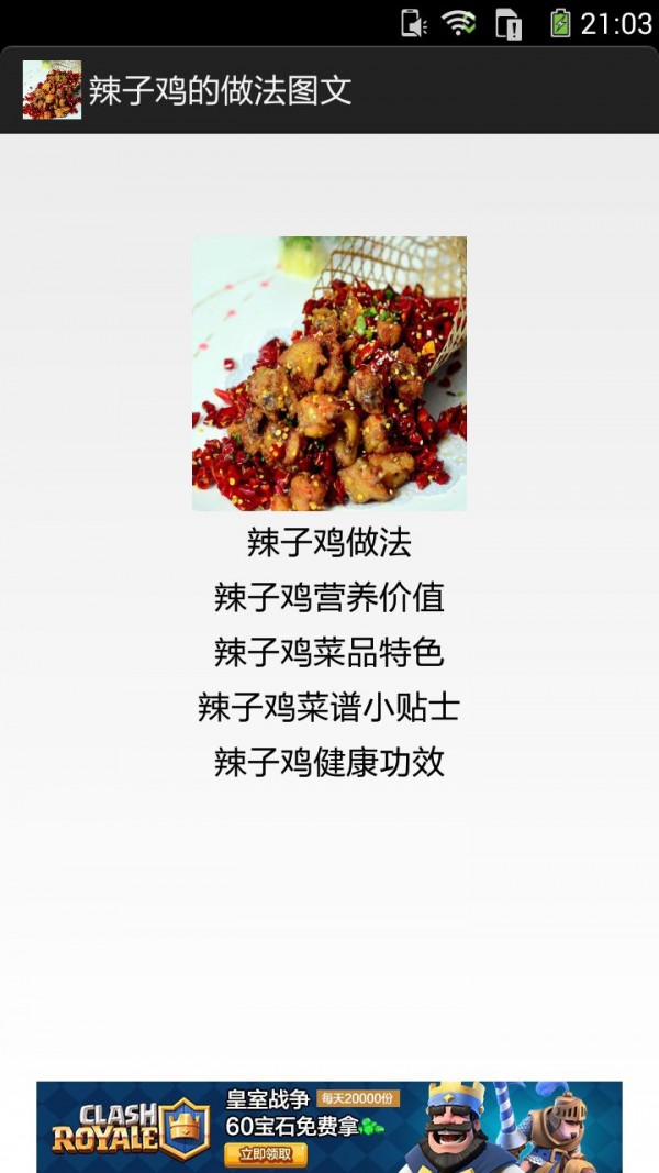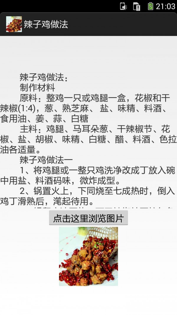 辣子鸡的做法图文app是一款菜谱类的软件,通过辣子鸡的做法图文app你可以方便的学习辣子鸡的做法。