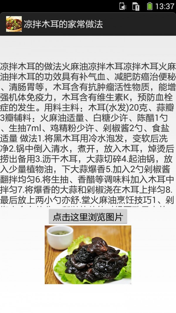 凉拌木耳图文介绍app是一款菜谱类的软件,通过凉拌木耳图文介绍app你可以方便的了解凉拌木耳的制作方法,对于有需要的朋友来说不错。