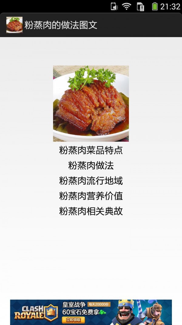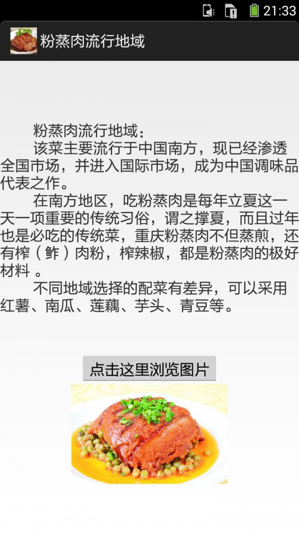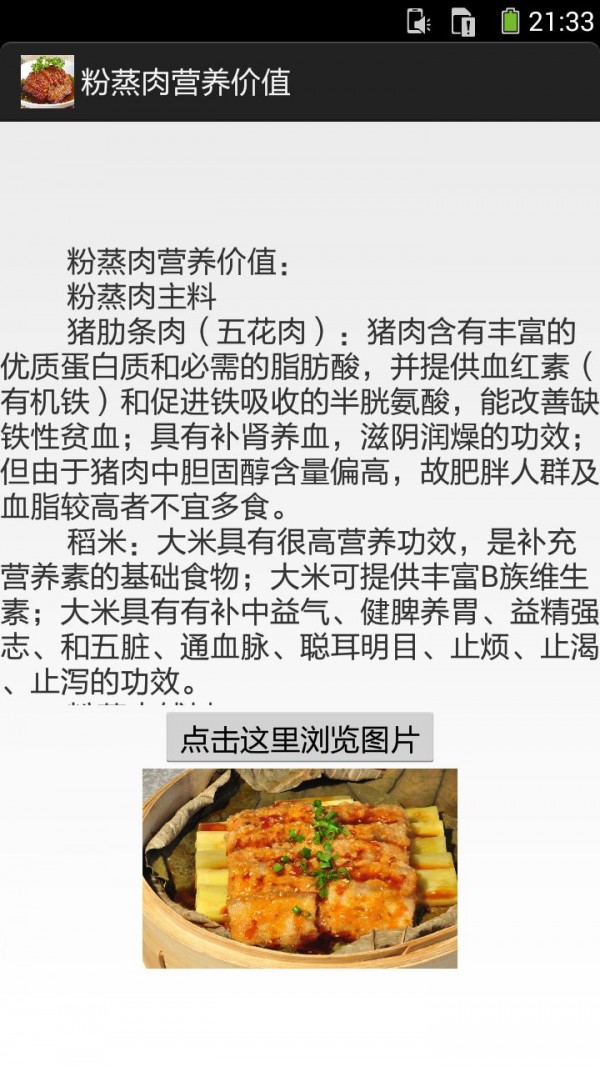 粉蒸肉的做法图文app是一款菜谱类的软件,通过粉蒸肉的做法图文app你可以方便的学习粉蒸肉的做法,对于有需要的朋友来说不错。