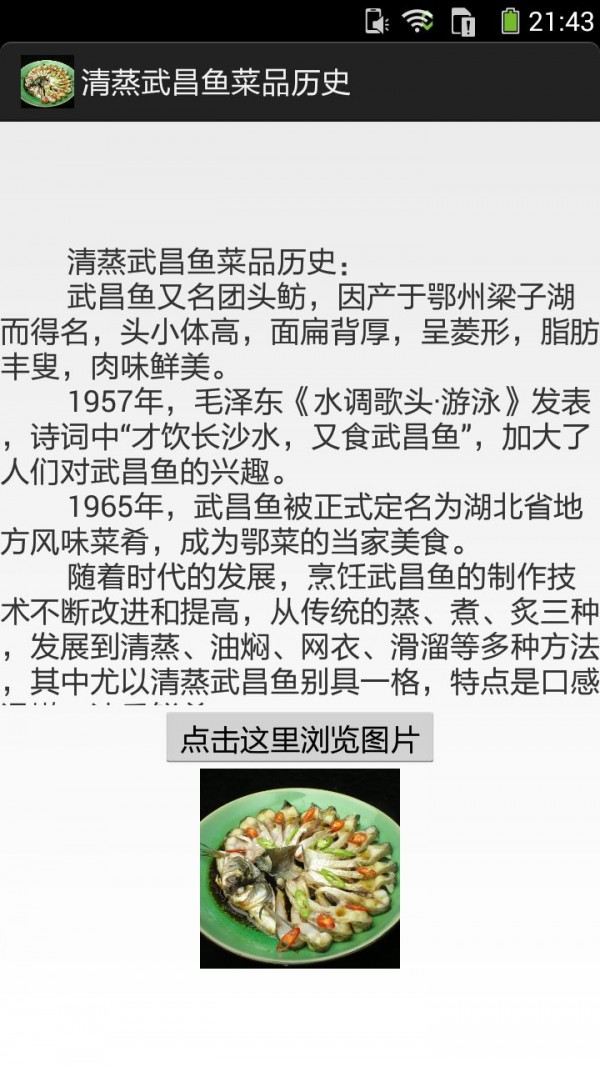 清蒸武昌鱼图文app是一款菜谱类的软件,通过清蒸武昌鱼图文app你可以方便的学习清蒸武昌鱼的做法,对于有需要的朋友来说不错。