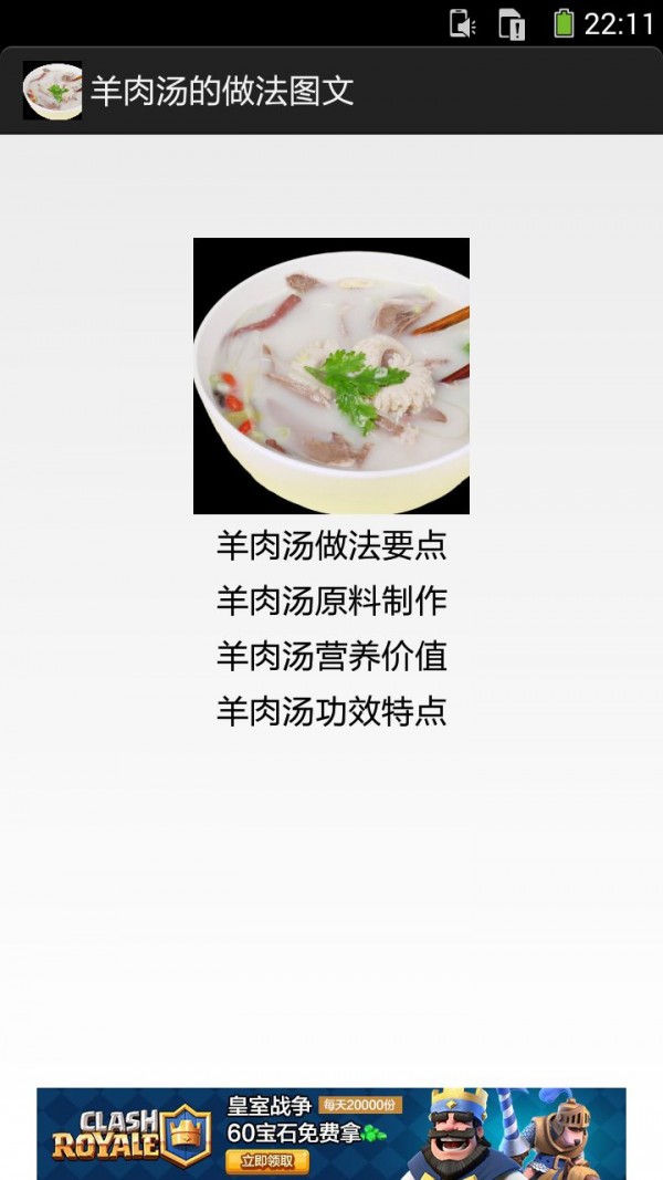 羊肉汤的做法图文app是一款菜谱类的软件,通过羊肉汤的做法图文app你可以方便的学习羊肉汤的做法,感兴趣的朋友可以多多了解一下。