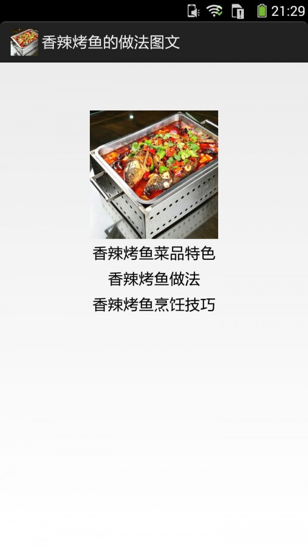 香辣烤鱼做法图文app是一款菜谱类的软件,通过香辣烤鱼做法图文app你可以方便的学习香辣烤鱼做法,感兴趣的朋友可以多多了解一下。