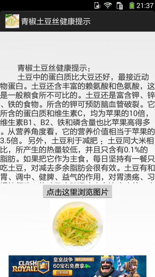 《青椒土豆丝的做法图文》APP手机应用内容介绍:你可以通过手机应用查阅青椒土豆丝做法一、青椒土豆丝做法二、青椒土豆丝做法三、青椒土豆丝做法三、青椒土豆丝健康提示、青椒土豆丝菜谱简介、青椒土豆丝材料、青椒土豆丝做法、青椒土豆丝做法二:青椒土豆丝食材准备主料:土豆一个甜椒一个调料:油、盐、味精、各适量青椒土豆丝制作方法1、土豆去皮切丝,青椒切丝。2、土豆和青椒分别在开水里烫至八分熟。3、开油锅,烩,加入盐味精等调料即可装盆......