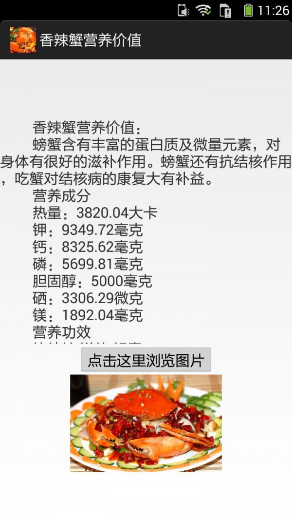 《香辣蟹的做法图文》APP手机应用内容介绍:你可以通过手机应用查阅香辣蟹做法、香辣蟹营养价值。香辣蟹营养价值:螃蟹含有丰富的蛋白质及微量元素,对身体有很好的滋补作用。螃蟹还有抗结核作用,吃蟹对结核病的康复大有补益。营养成分热量:3820.04大卡钾:9349.72毫克钙:8325.62毫克磷:5699.81毫克胆固醇:5000毫克硒:3306.29微克镁:1892.04毫克营养功效抗结核滋补解毒性味:咸、寒、有小毒。归经:入肝、胃。养筋益气、理胃消食,散诸热,通经络,解结散血。对于淤血、黄疸、腰腿酸痛和风湿性关节炎等有一定的食疗效果。食物相克螃蟹和柿子——腹泻蟹与柿《饮膳正要》:“柿梨不可与蟹同食。”从食物药性看,柿蟹皆为寒性,二者同食,寒凉伤脾胃,体质虚寒者尤应忌之;柿中含鞣酸,蟹内富含蛋白,二者相遇,凝固为鞣酸蛋白,不易消化且妨碍消化功能,使食物滞留于肠内发酵,会出现呕吐、腹痛、腹泻等食物中毒现象。隆隆蟹与梨梨味甘微酸性寒,陶弘景《名医别录》云:“梨性冷利,多食损人”。另外,民间有食梨喝开水,可致腹泻之...