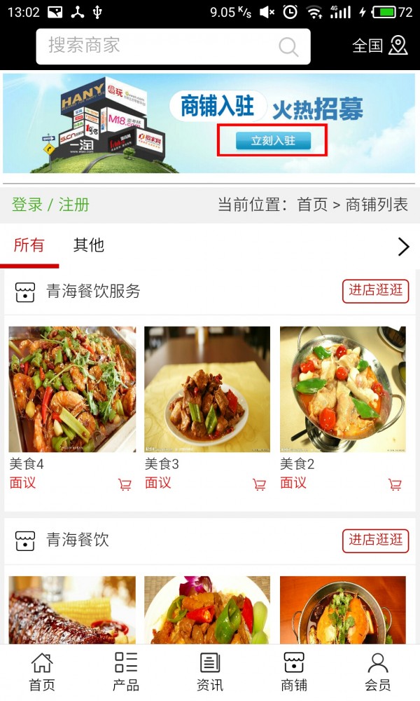 青海餐饮服务网客户端不仅具备搜索、行业资讯和最新信息等常用功能,而且还实现了手机版特有的会员注册 登录、广告位、招商开店等功能。