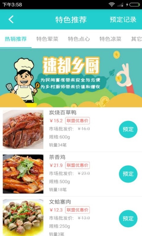特色食材:可实现多品类特色食材的在线预订、状态跟踪、提货结算