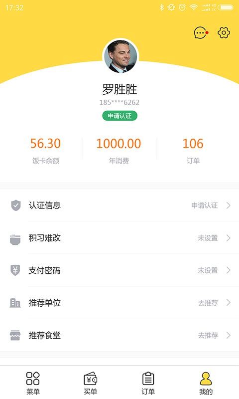 用户的个人中心,展示用户的基本信息,并提供用户和所属单位的认证和解绑操作