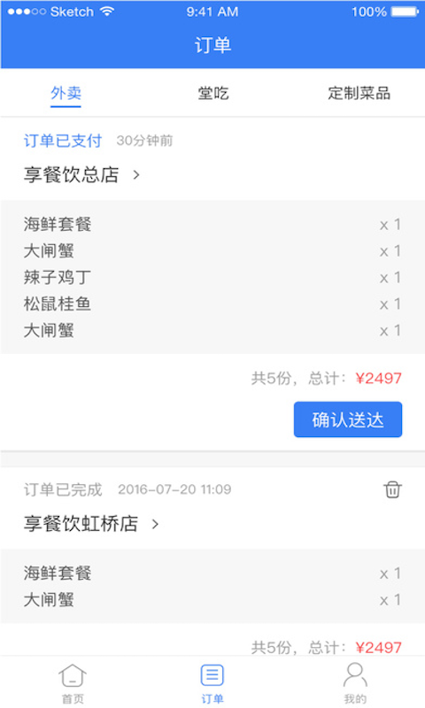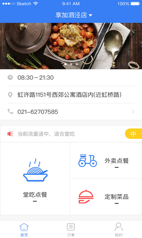 支持 堂吃,外卖,vip送餐,菜品定制功能。