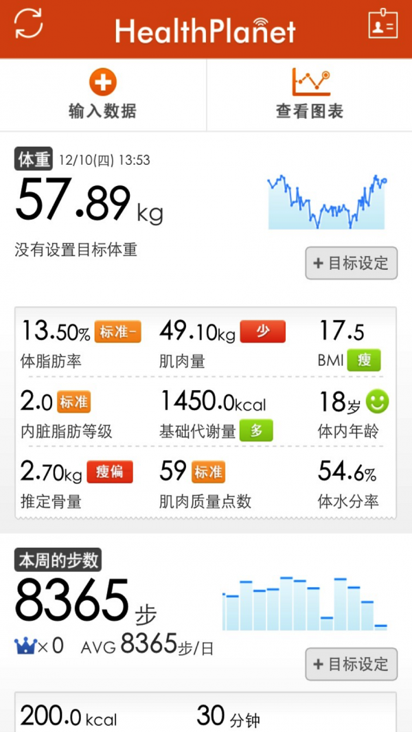 体重/体脂率/肌肉量/步数/步数消费卡路里等