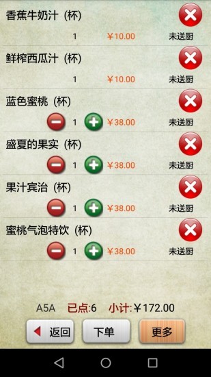 1. 操作简单,极易上手:无需背诵编码,支持拼音、五笔、手写、编码、类别五种点菜方式。不管服务员是什么学历,都能轻松上手。