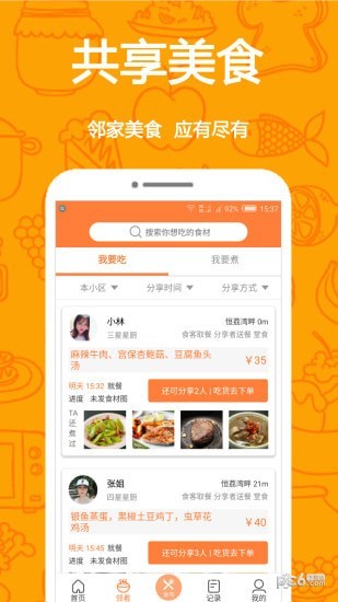 【住户认证机制】分享者和食客都是同一小区的邻居,彼此互相信任。