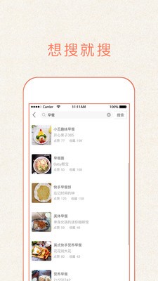 【搜索】:海量菜谱任您查找,帮您烹制任何您想要的佳肴。