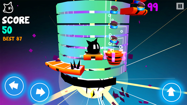 螺旋跳塔(Spirefall)是一款快节奏旋转跳跃题材敏捷游戏。游戏采用左右方向键和向上跳跃键控制,玩家需要控制我们的主角在旋转的螺旋塔上,不断的跳跃来收集更多的猫粮罐头。不过值得玩家注意的是,一定时刻注意避开那些随时可能出现的障碍物哟。游戏精美的画面,极具艺术气息的游戏元素,绝对会给你不一样的游戏体验。喜欢轻松休闲类手游的玩家,不要错过哦。