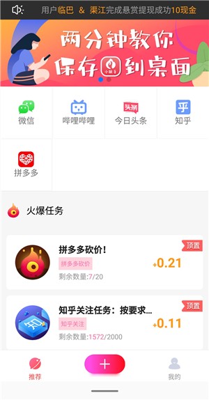 喜欢玩微信、哔哩哔哩、今日头条、知乎的你,可以在app上看文章之余,顺手给文章点个赞、评论几句,轻松搞定任务就可以领赏钱哦。