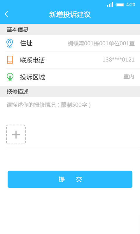 3、物业服务——在线意见反馈,随时随地与小区物业互动,享受高效,高品质物业服务