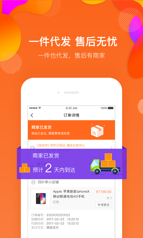 1键开店、1键分享、1件代发、1线品牌、1件包邮。