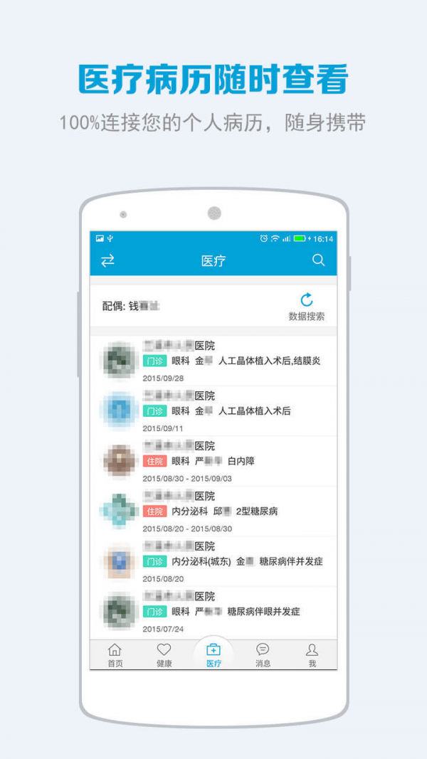 -----家庭管理:实现个人对家庭成员的医疗记录统一管理,特别是老人、小孩的医疗健康管理。