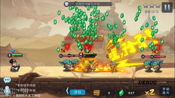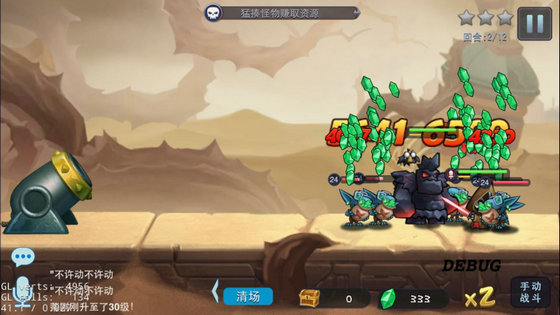1、战斗:炮打英雄排兵布阵,技能combo伤害爆炸