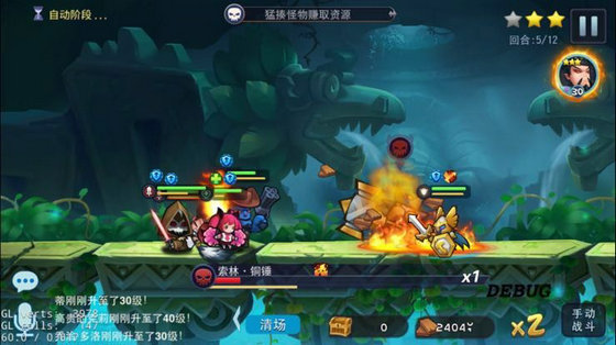 弹射操作是游戏中最大的亮点,在开场调整好英雄出场顺序后,玩家可以调整炮筒的角度和发射力度后把英雄从炮筒中打出,英雄飞起后玩家就能释放投掷技攻击敌人,投掷技的释放是否到位和英雄发射角度力度关系很大。落地后,英雄会以落地点为起始战斗,所以战法牧属性的英雄站位排序决定了阵容的输出和持久能力,英雄的怒气值积攒到一定程度即可放怒技,英雄的怒技combo往往能打出意料之外的爆炸伤害哦!大家一定要多多探索