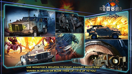异星要塞调查游戏是以强大的装甲车为为游戏冒险主题,在这无尽的宇宙世界中有着很多神秘的生物,作为强大的宇宙精英团队,要时刻保卫地球的和平,开始你的调查之旅!