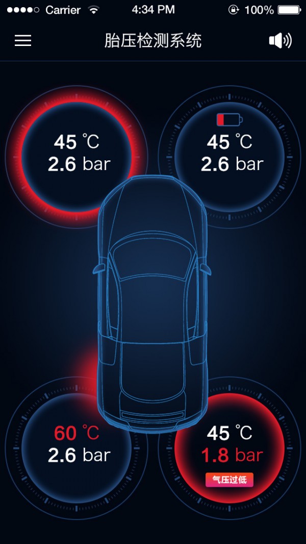 智能胎压app是一款专为智能手机设计的汽车轮胎压力监测系统(TPMS)应用软件,适用于蓝牙4.0以上版本的智能手机;智能胎压app配合安装在车胎上的蓝牙TPMS传感器接收四个轮胎的气压和温度,在汽车行驶过程中对轮胎的气压和温度数据进行监测。当数据出现异常"智能胎压"可及时报警,确保行车正常.