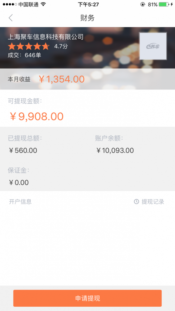 e养车商户端是一款专为车主提供购车后服务的养车神器,车主可以通过e养车享受4S店标准化保养,洗车,上门取送,汽车美容等服务,免费洗车,保养折扣等超值折扣定期发,小伙伴们都惊呆了