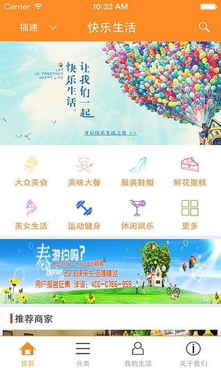 快乐生活为中国广泛地区的用户提供丰富多样、简单快捷的在线订餐服务;