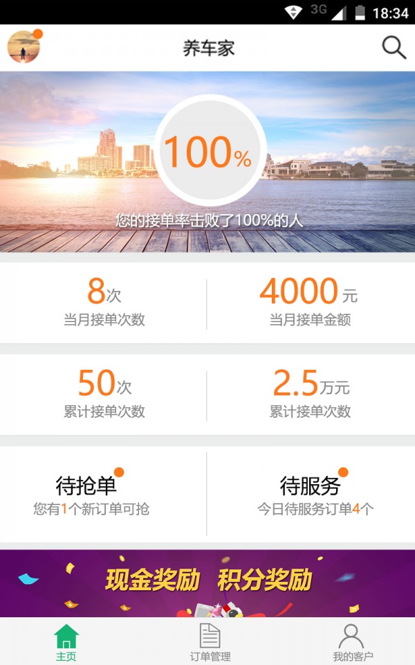 养车家app是车网通合作4S店服务顾问手机移动应用,对接车网通App客户到店服务的订单可在线抢单,或由客户指定接待的服务顾问,建立客户与4s店的长期稳定的挚友关系。统计每月及历史接单次数与接单金额,清楚掌握业绩情况,根据每月接单次数与接单金额,给予红包及积分双重奖励,积分奖励可兑换礼品。养车家app便捷的订单管理与客户管理,客户维系新体验。
