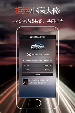 中国首家汽车保养o2o平台,以优惠的价格,高质量的4S店保养服务冠名。