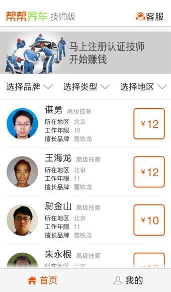 【免费注册】汽车技师可在帮帮养车技师版上免费注册,审核后即可在帮帮养车app上赚钱!