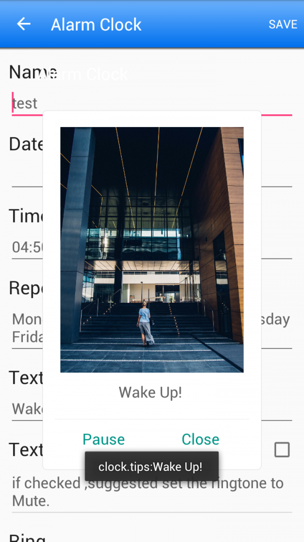 11. 支持暂停响铃(可设多少分钟后再闹)