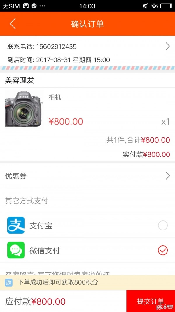 7、到店预约商品下单时默认最近的到店时间显示