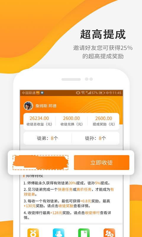增加了游戏试玩,任务墙好友提成等功能,优化了任务页面布局。