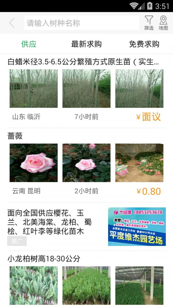 简单的操作方式让苗木企业可以随时随地上传供应信息,苗木企业必须按照软件设置的规格要求上传苗木信息,以确保信息的精准匹配。