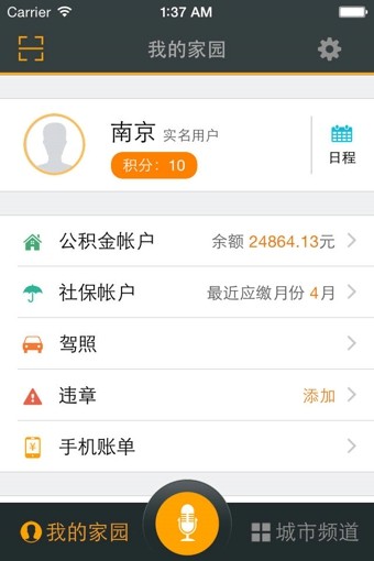 想随时知道你的公积金、社保缴纳情况?家里的水、电、气是不是又该缴费了?开车上班堵得慌,哪条路这时候最好走?好像闯了红灯,扣分还是罚款?没问题,实名注册“我的南京”,后台个性化信息主动推给你,一切轻松搞定!