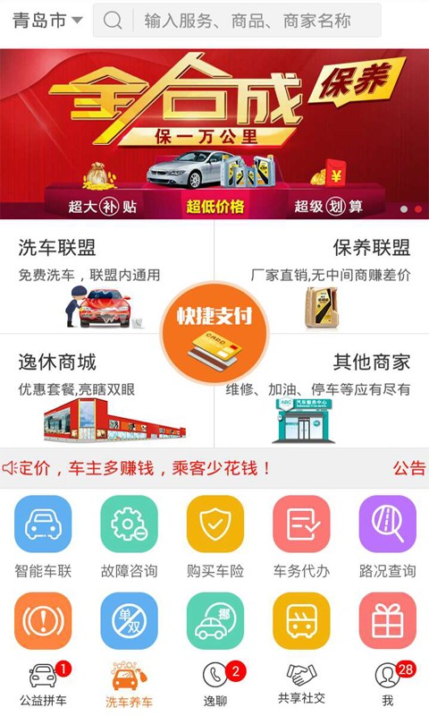 以爱车为核心,逸休联盟提供维修、保养、洗车、加油、停车、买车险等全面的汽车服务,线上线下结合,效率更高,费用更低。