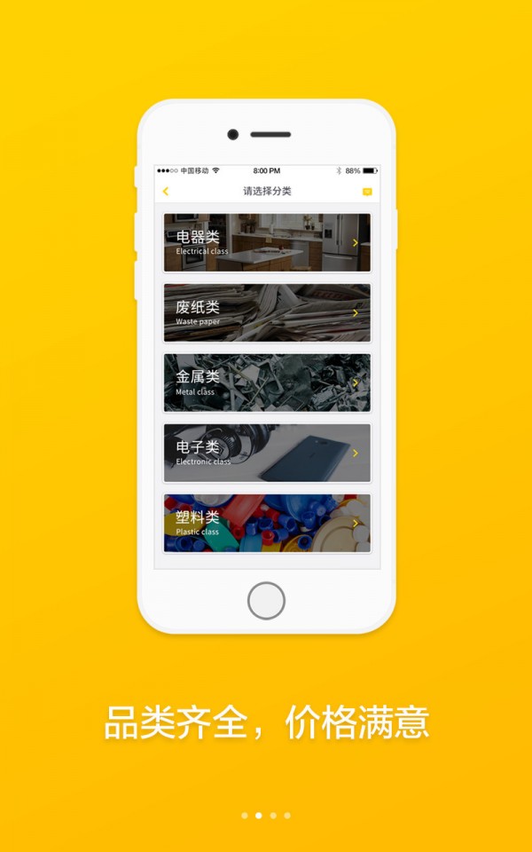 包含了办公用品、生活用品、电器、家具等等的几十类回收用品。