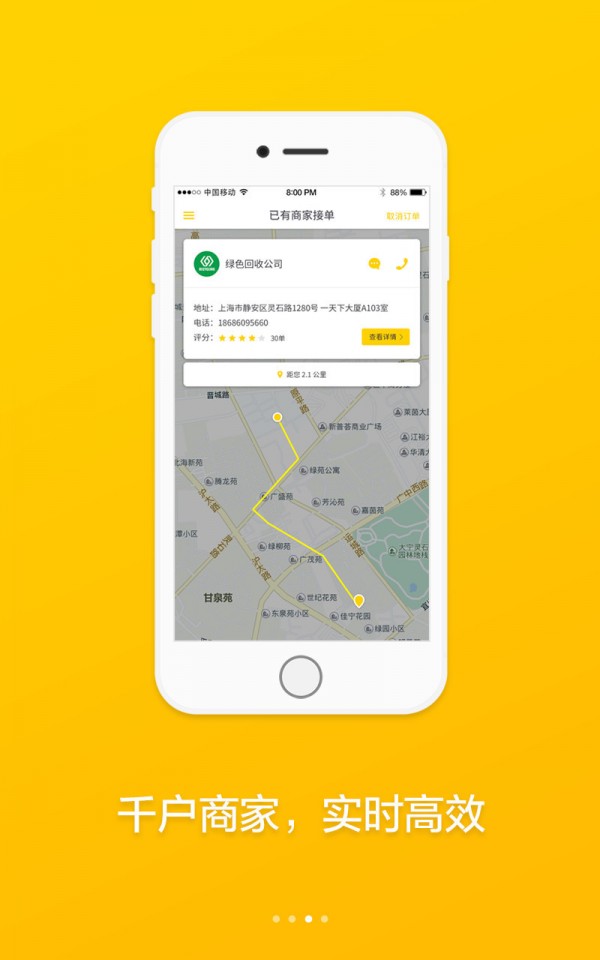 已经有大量的回收商入驻,用户一键下单,商户一键接单。