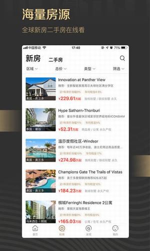 海量房源:汇聚全球海外房产新房、二手房房源信息,有独栋别墅、联排别墅、商业地产、商品房和公寓等房源信息;