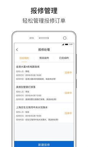 app是为物业人员提供的服务应用,app将物业人员常用的功能模块化,灵活搭建工作流程,手机工作更方便省事。