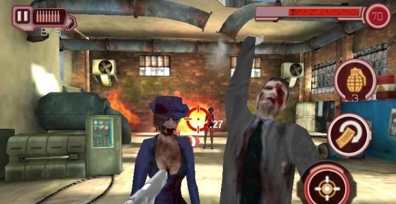 《僵尸狙击手2 Zombie sniper 3D-2》是一款横版3D第一人称射击游戏,游戏采用触屏移动的方式控制准心移动,点击射击按钮控制玩家射击。游戏场景极为真实,地图中的油箱,炸药,飞刀等都是可以射击的,要多去尝试射击那些道具,会有意想不到的效果出现哦。