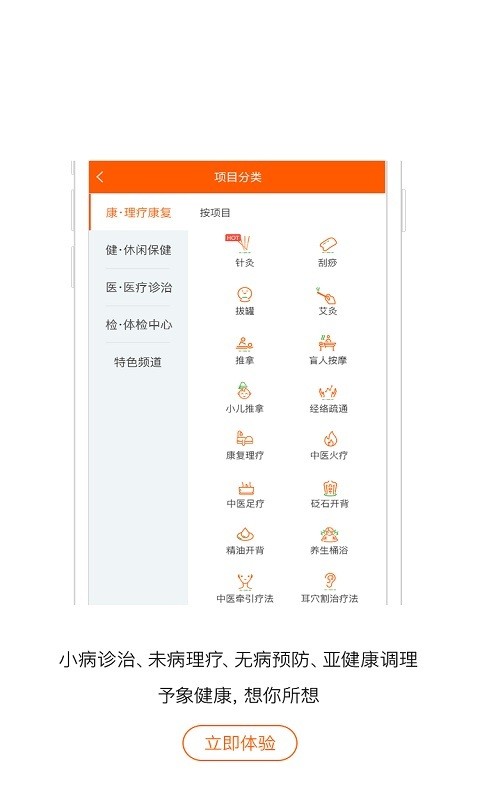予象健康客户端app是一款健康生活的o2o。予象健康客户端app与其他生活服务及移动医疗网站相比,予象健康更注重的是为客户提供一个理疗、养生、保健、医疗及预防等健康消费需求的评论与分享的专业的健康生活服务。