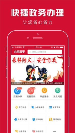 APP是一个聚焦昌平本土的,服务社会大众的,全新的资源信息共享平台,舆论监督的问政平台,沟通民生的服务平台。涵盖了民政、社保、交通、旅游、餐饮等多个领域,现已开通预约婚姻登记、生育服务证办理、医疗挂号、小客车摇号、违章查询等政务服务,让百姓足不出户便可进行政务办理,省心省力。