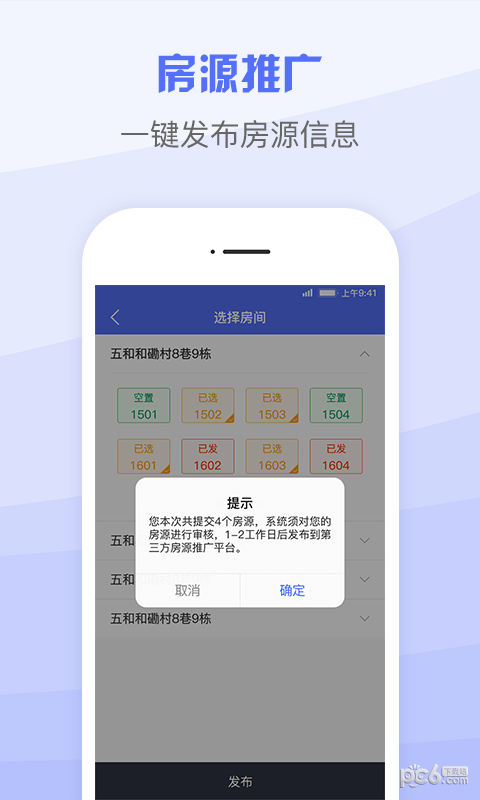 6、房源推广:一键发布房源,增加曝光量,提高入住率。