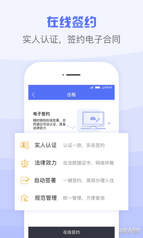 2、线上签约:活体认证,实名信息线上采集,房东可发起电子签约,租客确认并支付费用,线上完成房屋交付动作