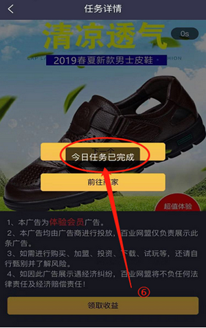 二、浏览广告(免费会员可以浏览5条广告,每条1元)直至第六步显示“今日任务已完成”当日的广告任务就算完成了!