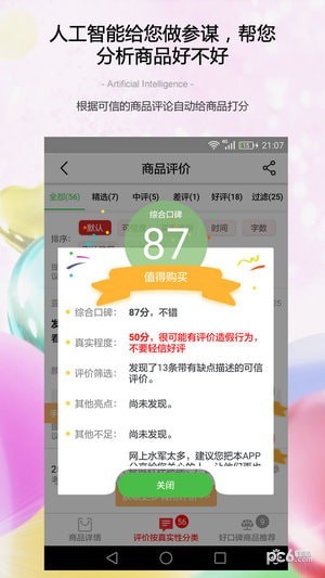 app是一款网购小助手,软件手机版可以帮助用户过滤虚假评价和无意义评论,同时app也能提取出真实可信的精彩评价给用户参考。