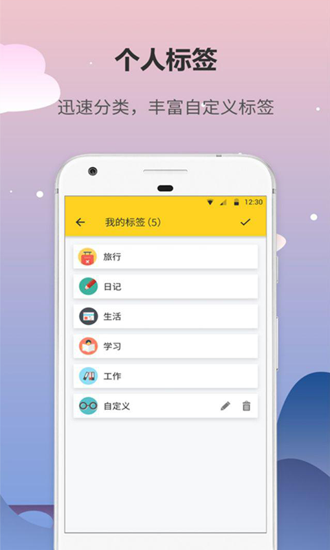 【日记分类】生活日记、工作日记、爱情日记等日记进行归类,查看更便捷