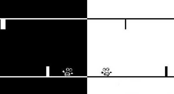 向左转向右转(Turn Left Turn Right)是一款十分简单耐玩的益智游戏。游戏中有黑白两个世界和黑白两只小螃蟹,玩家需要分别控制两只小螃蟹去躲避飞来横祸,保证自身的安全,两只小螃蟹都是玩家自身,如果只兼顾一只小螃蟹另一只死掉,游戏也会结束,这将非常考验玩家的全局性和左右的观察力。
